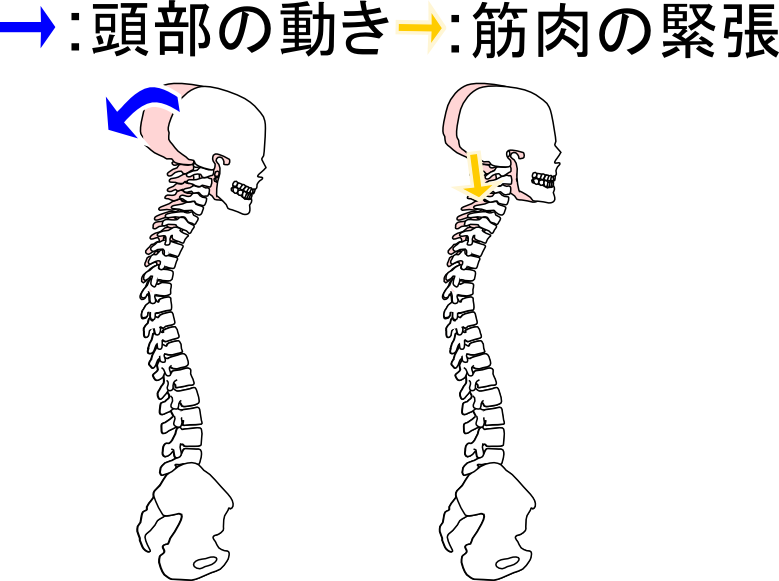 右の図の首の後ろに筋肉の緊張が発生しています。