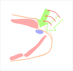 では、どうやってピンクの筋肉をどけるかということですが、下の図を見てください。