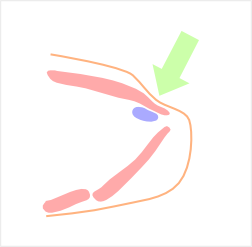 このまま押し続けると筋肉は下の図のように若干上にずれ込みます。